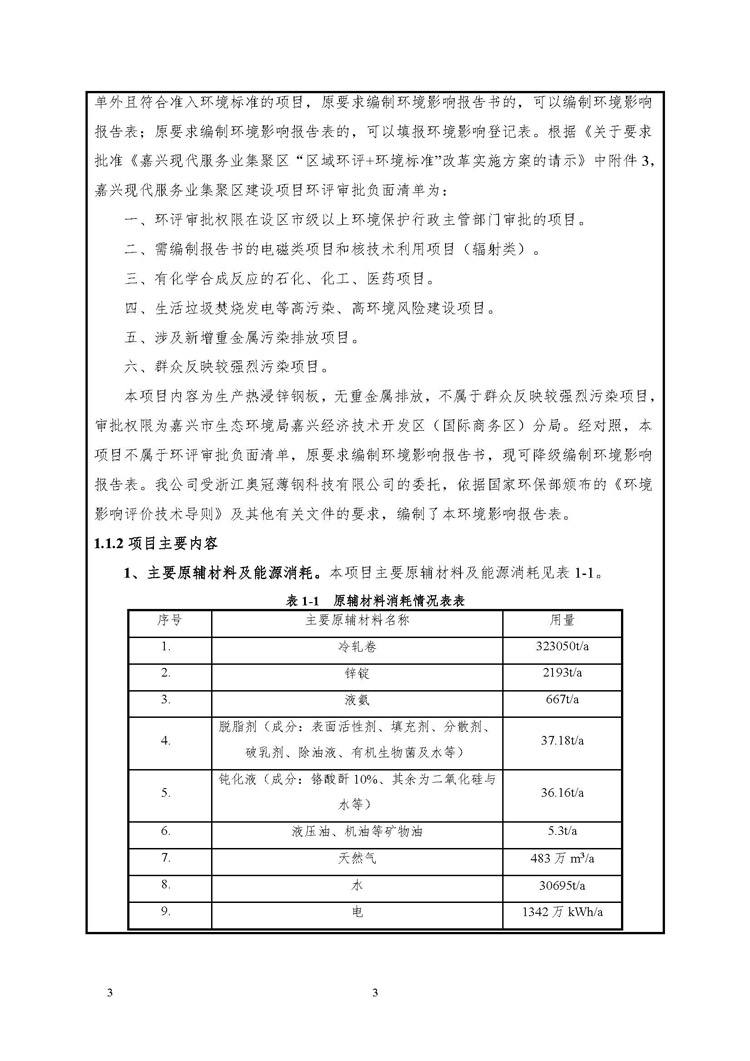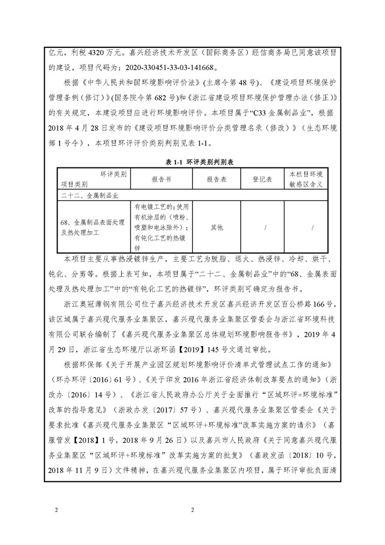 浙江奧冠薄鋼科技有限公司 浙江奧冠薄鋼年產32萬噸熱浸鋅生產線技改項目 環境影響評價公告信息