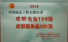 2018年11月13日,中國成達工程有限公司在成都2018年百強企業(yè)發(fā)布暨頒獎大會榮獲成都企業(yè)100強稱號和成都服務業(yè)100強稱號。