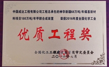 2016年9月9日,我公司神華新疆68萬噸/年煤基新材料項目180萬噸/年甲醇合成裝置榮獲2016年度全國化學(xué)工業(yè)優(yōu)質(zhì)工程獎。